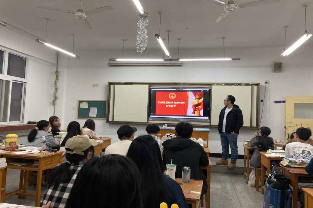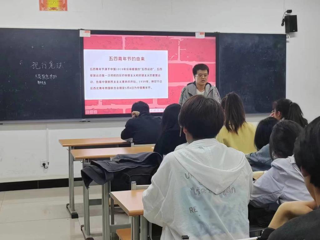 各班级辅导员围绕五四运动的时代背景、发展过程、典型人物和事迹展开讲解。立足新时代,要实现中华民族伟大复兴,需要青年一代的勇于担当,贡献青春力量。各班级辅导员希望作为新时代青年的同学们要始终牢记听党话跟党走,树立远大理想,担当时代责任,锤炼品德修为,练就过硬本领。
