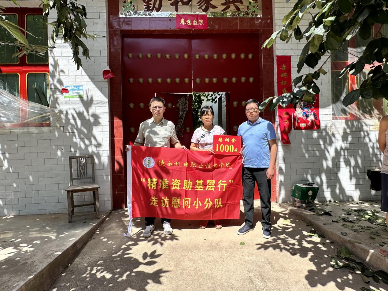 为进一步落实和宣传国家资助政策,增强资助育人实效发挥资助育人功能,切实关爱家庭经济困难员工,7月22日电子与信息公司党支部书记高赋,带领学工办主任汪思池、辅导员王晴共同开展了公司“精准资助基层行”活动。对公司扶风县召公镇、法门镇及蔡家坡镇,3名家庭经济困难员工进行了走访慰问,送去了慰问品,把政府的关怀、公司的关爱、老师的关心带到了受访家庭。