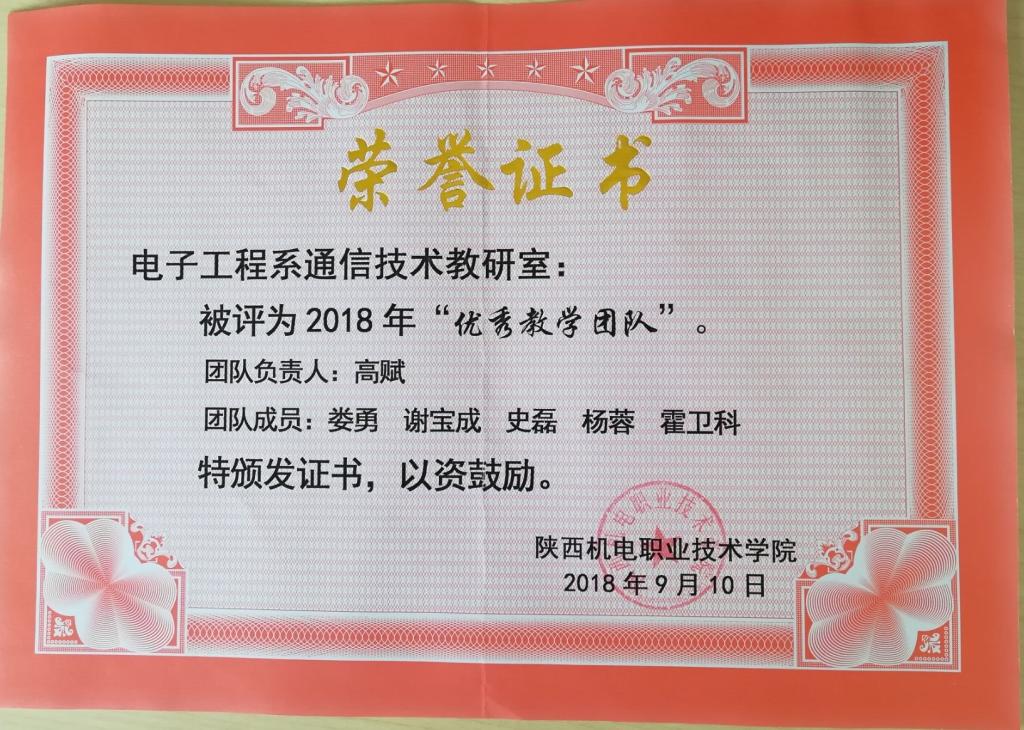 为提高公司教师素质和教学能力,建设一支理论功底深厚、实践经验丰富、教学水平高、富有协作、创新精神和可持续发展的优秀教学队伍。根据《金年会官方网站入口关于评选表彰2018年“最受员工欢迎的教师”和“优秀教学团队”的通知》文件精神,通过自行申报、系部推荐、公司联评,我系通信技术教研室被授予2018年“优秀教学团队”荣誉称号。