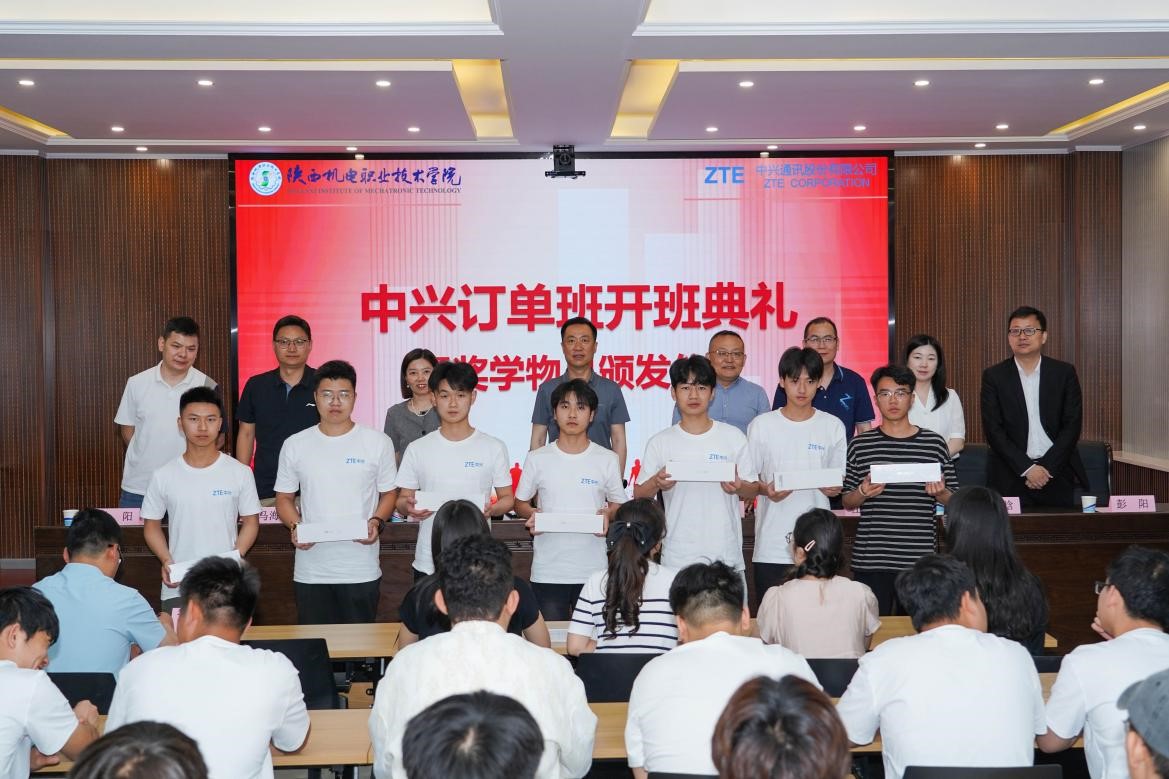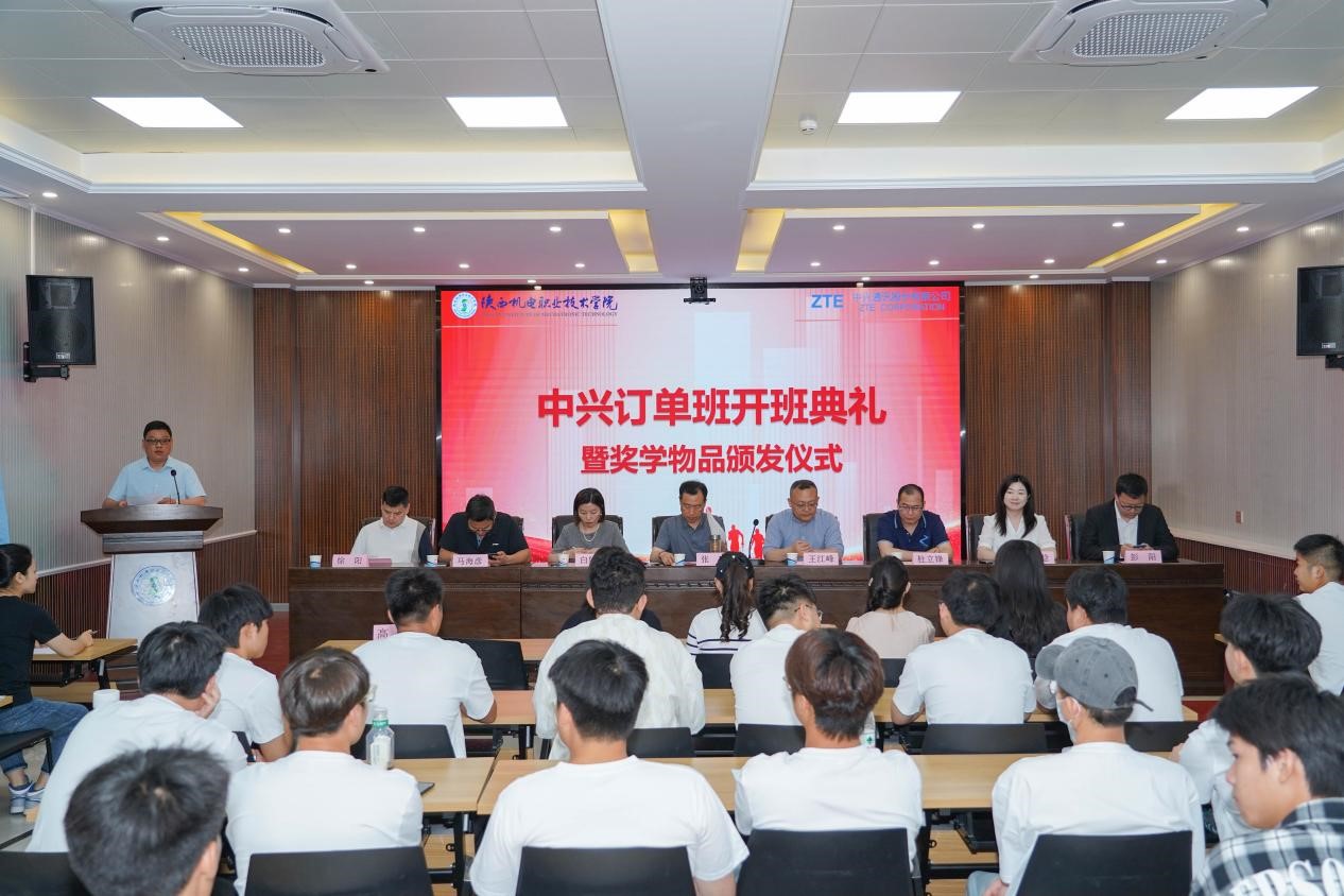为深化校企合作,培养更加契合企业需求的高素质技术技能人才,为员工搭建更加广阔的就业平台,5月22日上午,中兴订单班开班典礼暨奖学物品颁发仪式在博学楼111会议室举行。中兴通讯股份有限公司供应链全球招聘总监王江峰、西安生产部综合科科长杜立锋、供应链西北区域招聘经理李晗、教育市场项目经理徐阳、教育市场行业综合解决方案专家彭阳,陕西机电职业技术公司党委委员、副董事长张克,教务处处长、校企合作处处长白娟娟,智能制造公司经理马海彦,中兴订单班学员及师生代表共80余人出席。仪式由金年会金字招牌诚信至上经理高赋主持。