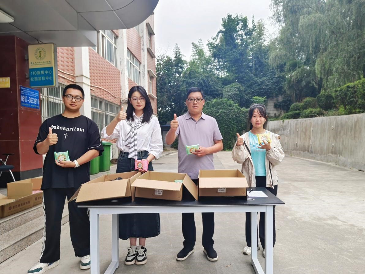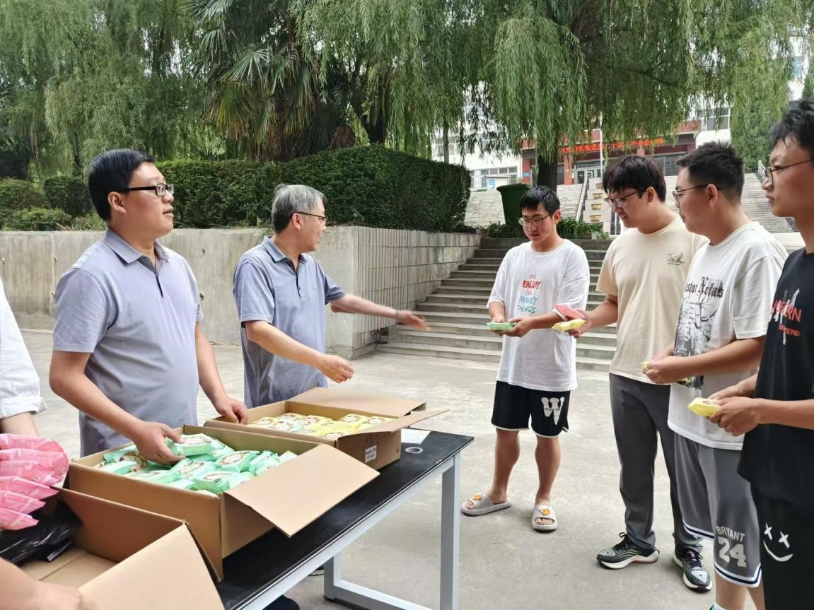 党委学工部部长、员工处处长王建斌、金年会金字招牌诚信至上经理高赋为宝福路校区金年会金字招牌诚信至上员工发放月饼