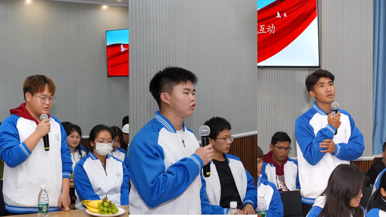 交流互动环节中,师生们围绕学业发展、文化传承、校园活动等话题畅所欲言,员工们分享在学习生活中遇到的温暖、问题与挑战。
