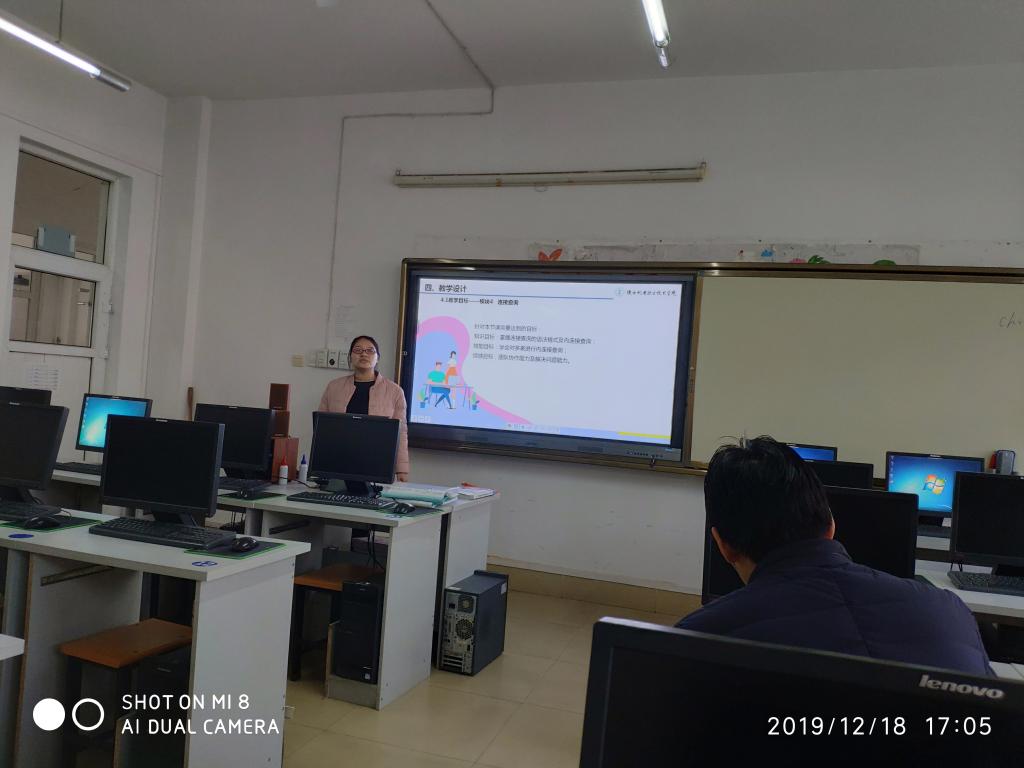 本次参加的教师5人,比赛项目包括教学设计、说课、现场教学、答辩等环节,比赛成绩总成绩=教学设计成绩+说课及课堂教学展示成绩。经过部门所有老师的指导,4位老师作为评委,每位老师在比赛中都展示出不凡的教学能力和教学素质。