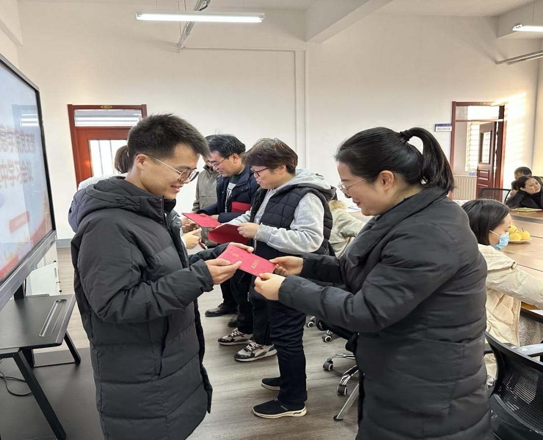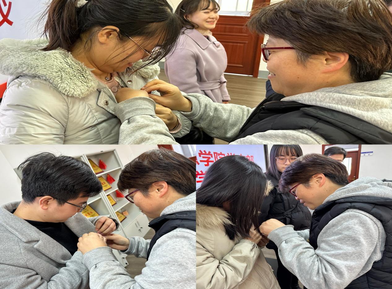 活动中,郭靖为今年新加入支部的王玥婕、周靖昆、付仁、王轩等4名党员教师擦亮胸前党徽,现场全体党员相聚一堂,通过分享入党故事、交流思想心得、“重温入党誓词”、赠送“政治生日”贺卡、畅谈“政治生日”感言等环节的逐项展开,给党员教师过了一个有温度、有深度、有情怀的“政治生日”。