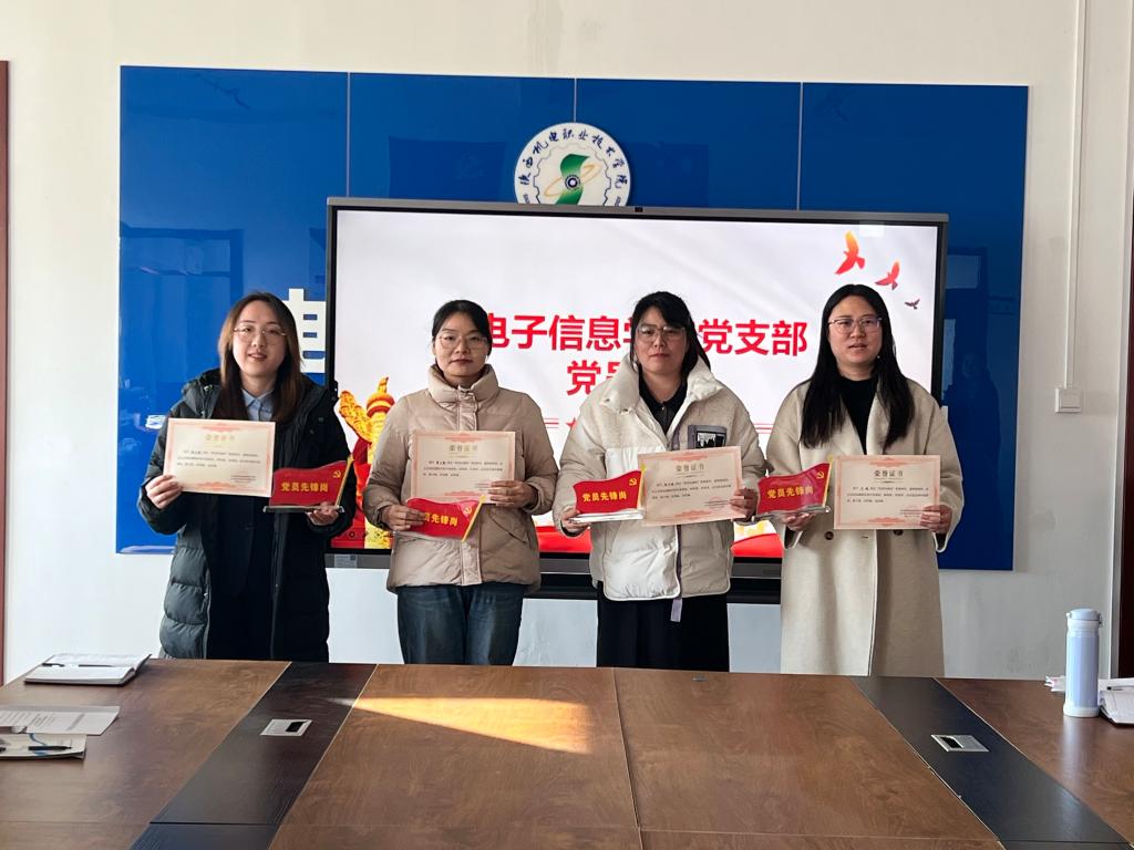 党支部副书记高赋宣读了《关于授予董文静等4名同志“党员先锋岗”的决定》,公司领导分别为董文静、柴文静、郭巧梅、王晴颁发了荣誉证书及“党员先锋岗”身份牌。