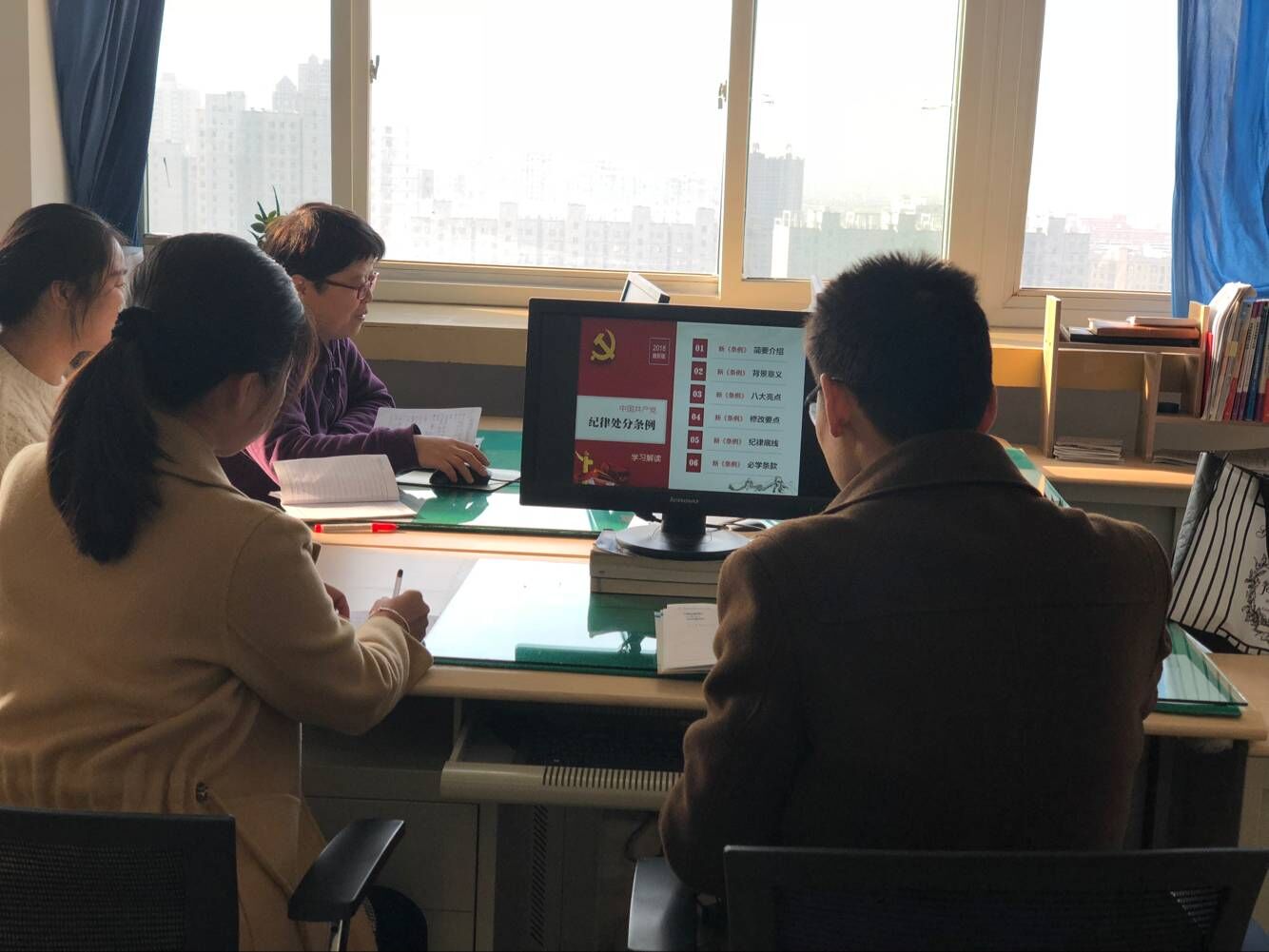 2018年11月7日下午,应公司党委工作安排和要求,信息工程系党支部为全面提升党员综合素质,完善政治理论,在电子信息大楼2707办公室,集体组织再次全文学习了《中国共产党纪律处分条例》。并对条例中变更和增加的内容,按照党委下发的学习指导相关文件,进行了细致的研究和学习。