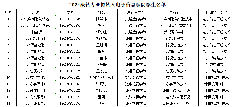 2024级转专业拟转入电子信息公司员工名单公示