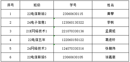 依据教育部《普通高等公司员工管理规定》(教育部令第41 号)、《金年会官方网站入口学籍管理规定(修订)》(陕机电职院发〔2022〕151号)第十三条第四款“未办理暂缓注册手续或未经请假逾期2周未注册者,视为自动放弃学籍、《金年会官方网站入口员工休学、保留入学资格(学籍)和入(复)学、退学工作实施细则》(陕机电职院发〔2024〕49号)第六条第六款“开学后两周内未注册而又未履行暂缓注册手续,予以退学。”之规定,黄攀等6名员工逾期两周未报到且未履行暂缓注册手续。