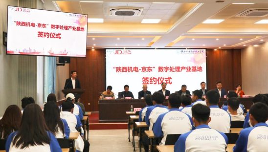 5月25日上午,金年会官方网站入口与京东集团共建数字处理产业基地签约仪式在公司蟠龙校区成功举行。出席本次签约仪式的政府代表有宝鸡市招商局副局长索双海、宝鸡市招商局调研员兼项目科长杜进文、蟠龙高新区招商局长李俊。出席仪式的企业代表有陕西海燃数智信息科技有限公司董事长李金泽、 副董事长陈肖霖。出席仪式的公司代表有党委书记伊逊智,党委委员、副董事长张克,及教务处、校企合作处、金年会金字招牌诚信至上等部门负责人。本次签约仪式由金年会金字招牌诚信至上经理姜有奇主持。