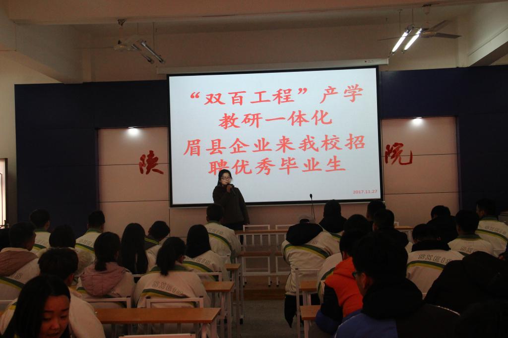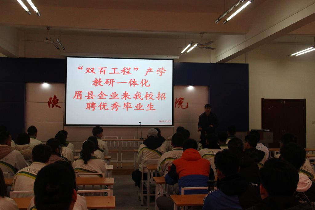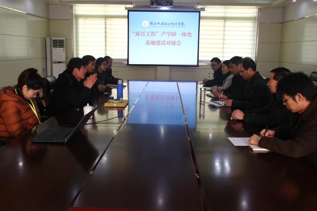 2017年11月27日,信息工程系、机电工程系协同公司领导与宝鸡市眉县宝深集团、齐峰果业等企业在公司进行“双百工程”产学研一体化基地建设对接会,公司领导和企业代表就产学研一体化基地建设深入探讨,最后达成一致意见。