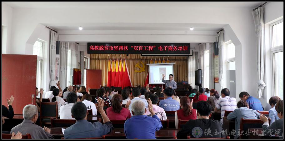千金在手,不如一技在身,正值猕猴桃授粉时节,5月15日,信息工程系教师李选臣被公司安排参与“双百工程”脱贫攻坚扶贫工作,前往眉县金渠镇宁渠村为当地果农代表进行电商知识培训。