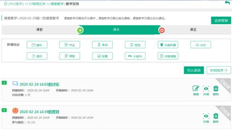 开课前,在职教云创建课程,根据课程教学内容和授课计划,从慕课、职教云、资源库、专业群和本地导入本门课需要的多媒体资源、试题和作业等,做好课程设计和试题库建设,为员工进行预习、学习、复习、参与课堂活动、作业提交和老师进行课堂组织搭建平台。