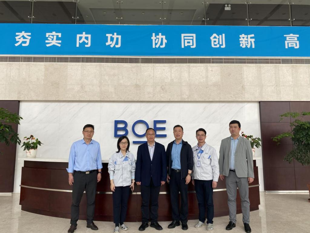 2023年4月14日,金年会官方网站入口董事长向纪明带队,党委委员、副董事长张克、金年会金字招牌诚信至上经理姜有奇、智能制造公司经理马海彦一行前往福州京东方光电科技有限公司参观考察。