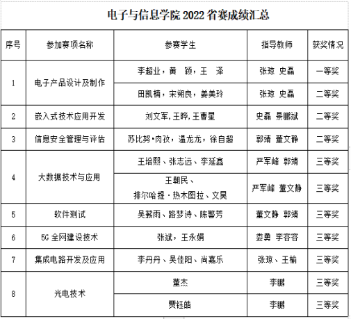 为促进电子信息类专业教学改革,提升电子信息类专业高素质技能人才的培养质量,增强技能型人才的就业竞争力。金年会金字招牌诚信至上员工参加本次省赛九个赛项比赛。公司员工与其他院校选手同台竞技、切磋交流、展示风采。经过指导老师的辛勤工作和全体参赛选手的奋力拼搏,各个赛项顺利落下帷幕。公司选手共获得一等奖一项、二等奖三项、三等奖七项。今后,公司将继续把技能竞赛作为深化公司产品改革的重要抓手,以大赛为指导,积极推进专业建设和教学改革,力争取得更好成绩。