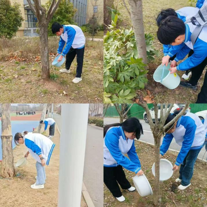 当日下午,志愿者们手持工具,穿梭于校园的各个绿化区域,细致地为每一株花草树木浇水,确保它们能够充分吸收水分,健康成长。他们注重细节,细心地清理了树木周围的落叶与杂草,为校园营造了一个更加整洁美观的绿化环境。