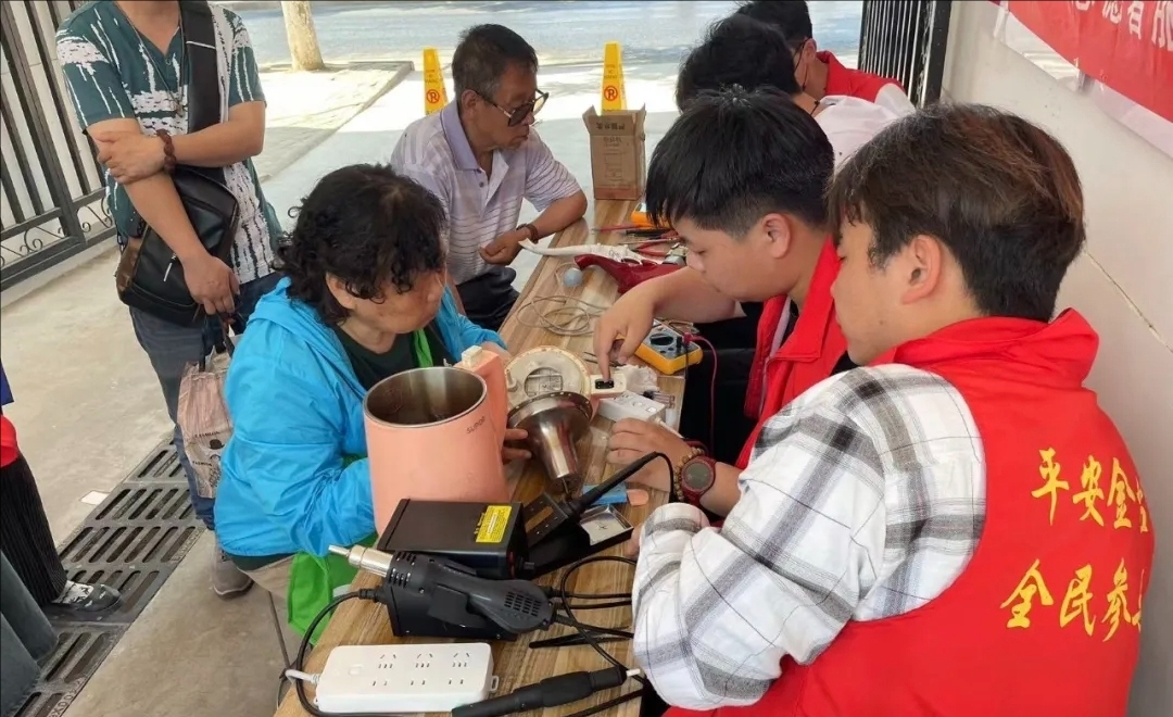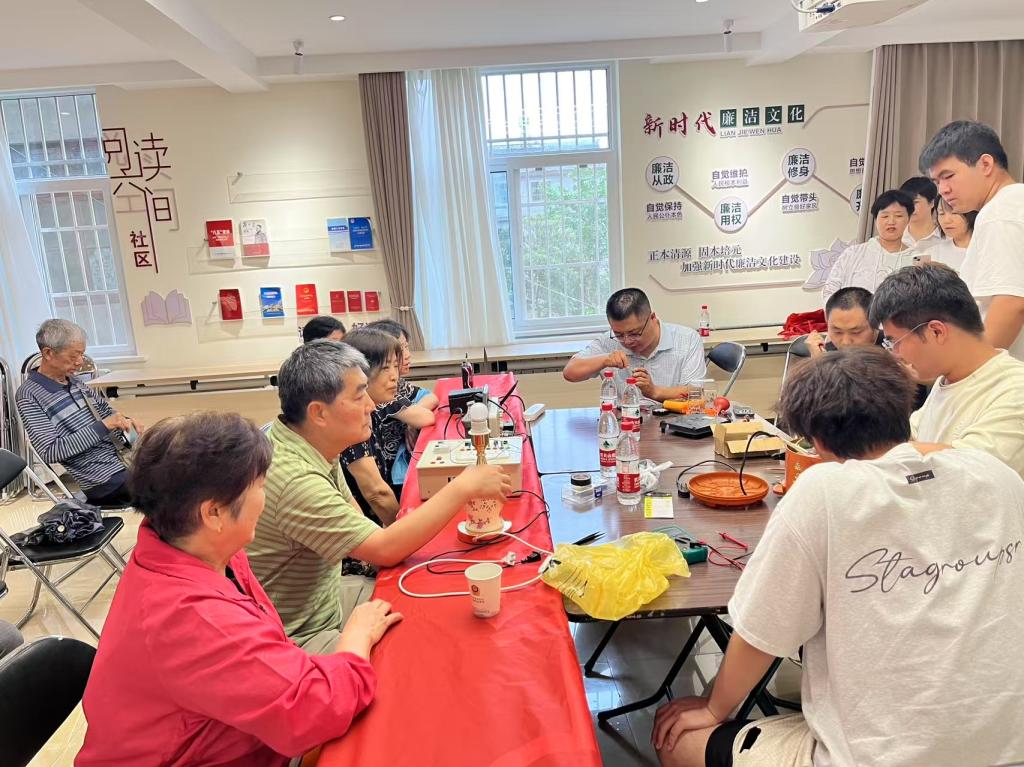 社区活动中心化身为临时“便民维修站”。电风扇重获清凉动力、电饭煲再度飘起饭香、收音机重新传出悠扬旋律……面对居民家中“罢工”的大小家电,队员们化身“电器医生”,耐心问诊、细致检测、精准维修。百翠园社区的张大爷捧着修好的老式收音机感慨:“这些小家电买新的不便宜,扔了又可惜,多亏了同学们,真是帮了大忙!”团队累计服务居民80余人次,修复家电近100件,每一件修复的电器背后,都是居民紧锁眉头后的舒展笑颜。