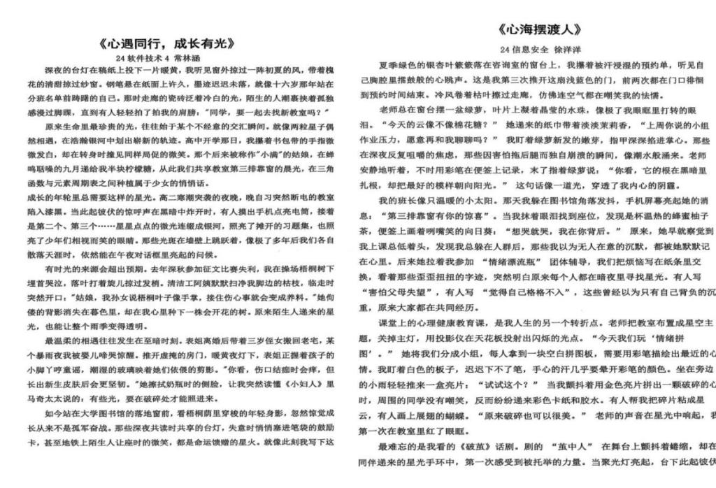 同学们以自己的笔触和角度去叙述心情变化,记录老员工活的一点一滴,释放同学们的心理压力,防止心理问题的产生与发展,帮助同学们以积极健康的心态迎接生活、面对生活。